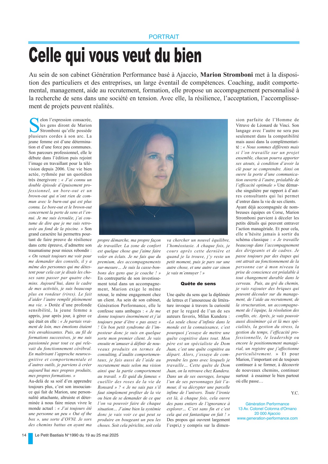 Article sur Generation Performance et le coaching professionnel en Corse.